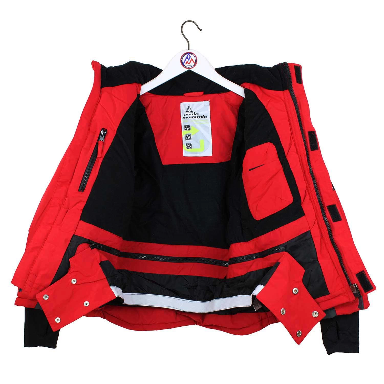 Ensemble de ski Peak Moutain, très tendance. Avec sa capuche amovible et son lien de réglage élastiqué à la base, ce produit vous permettra de glisser sur les pistes enneigées toute la journée. Très résistant au froid, il vous apportera un confort total.